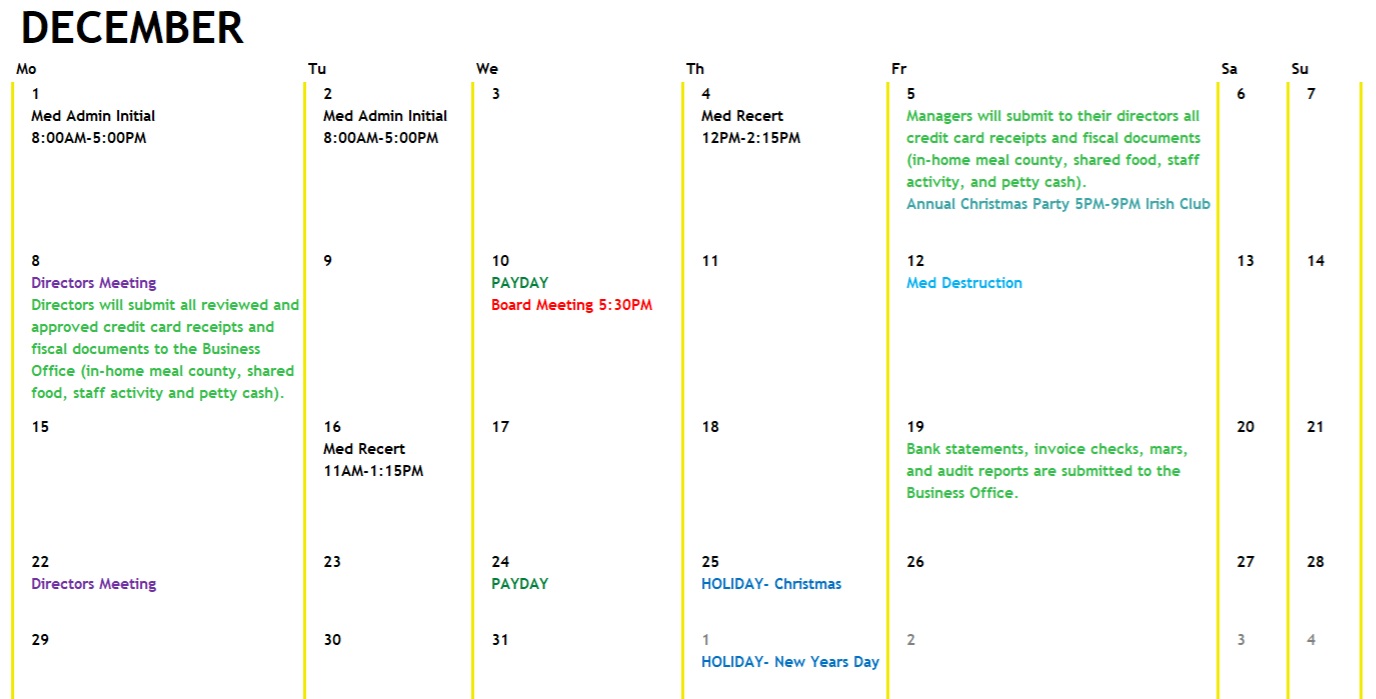 Click here for instructions on the new version of AccelTrax- HPC Click here for instructions on the new version of AccelTrax - EVV Please click here if you want to volunteer to help with setup or teardown of the Holiday HappeningFirst Aid / CPR Recertification or Lockout: CLICK HEREFiscalUnlock Request FormIRS Tax Withholding EstimatorHRLinksBlogCalendars NovemberDecemberJanuaryComing soon...